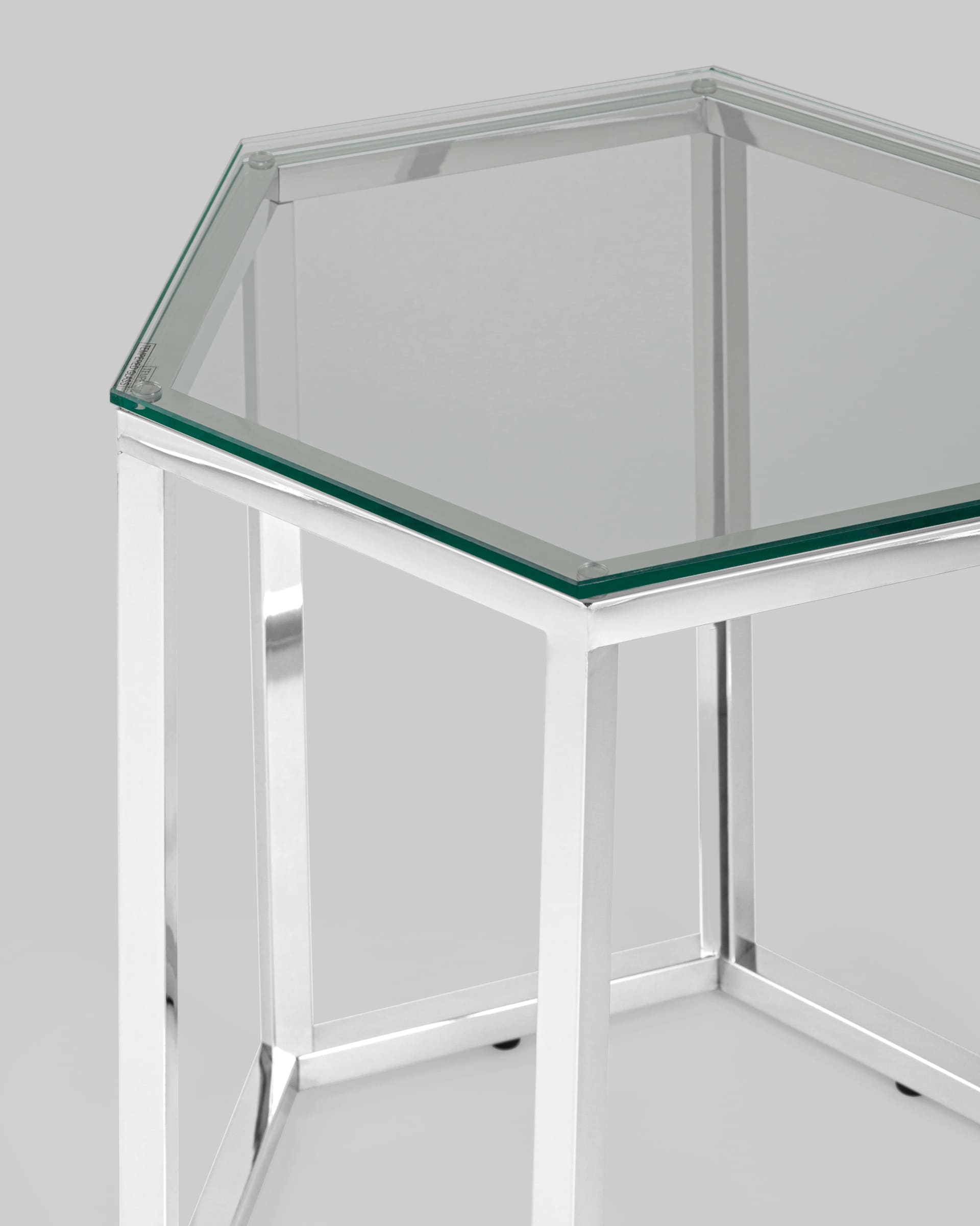 журнальный ГЕКС серебро каркас нержавеющая сталь столешница закаленное стекло |